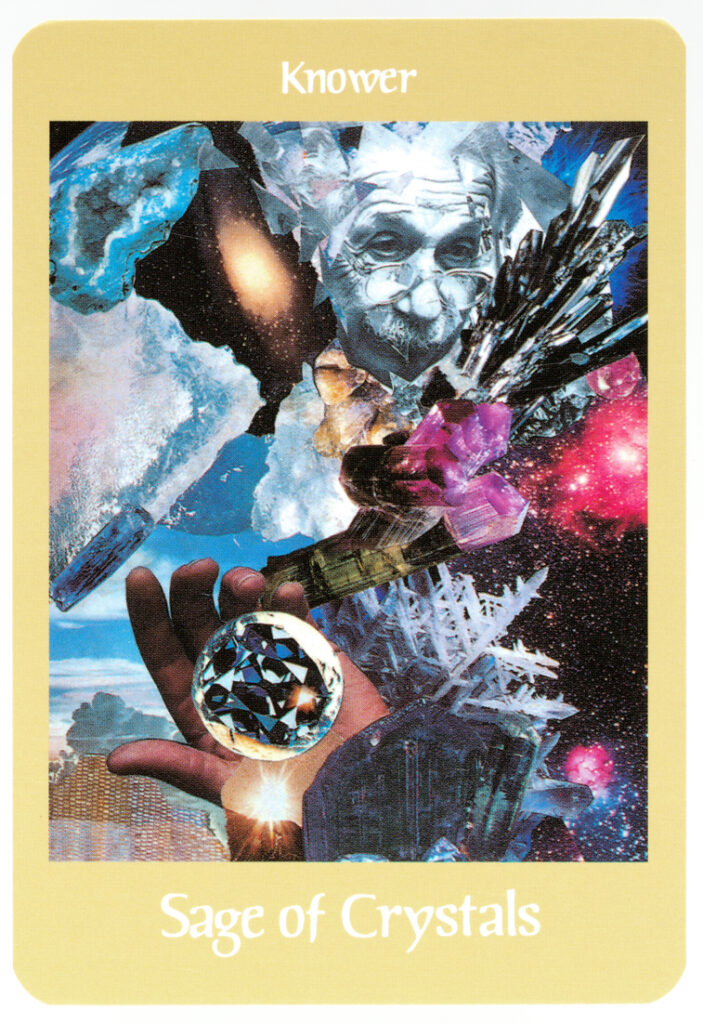 「クリスタル Sage/Knower 智慧の人」カードは、内面にある智慧のマスターであり、真理を知ることの重要性を示しています。このカードは、自分の中にすべてがあることに気づき、思考の力を鍛え、常識を超えていくことを促しています。高次の意識とつながることで、自分の本当の目的ややりたいことが明らかになり、宇宙の一部である自己を認識することを表しています
