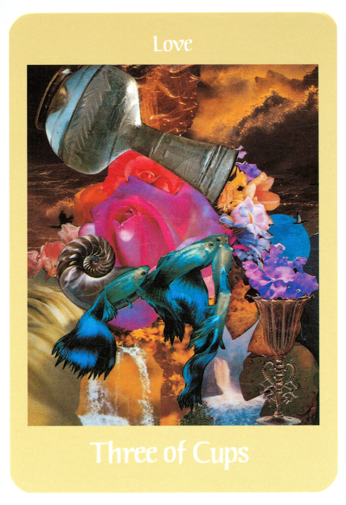 このカードは、ピンクのバラが象徴する心臓センターの展開を表しています。ノーチラスと花が咲き誇る花で表現され、自己を開放して他者を受け入れることを示しています。愛は、自分自身のすべての部分と世界、他の人々と一緒に流れ、共に花開くことを促します。また、戦う魚の親交によって、違いにもかかわらず他人とのコミュニティーを築く接着剤であることが示されています。